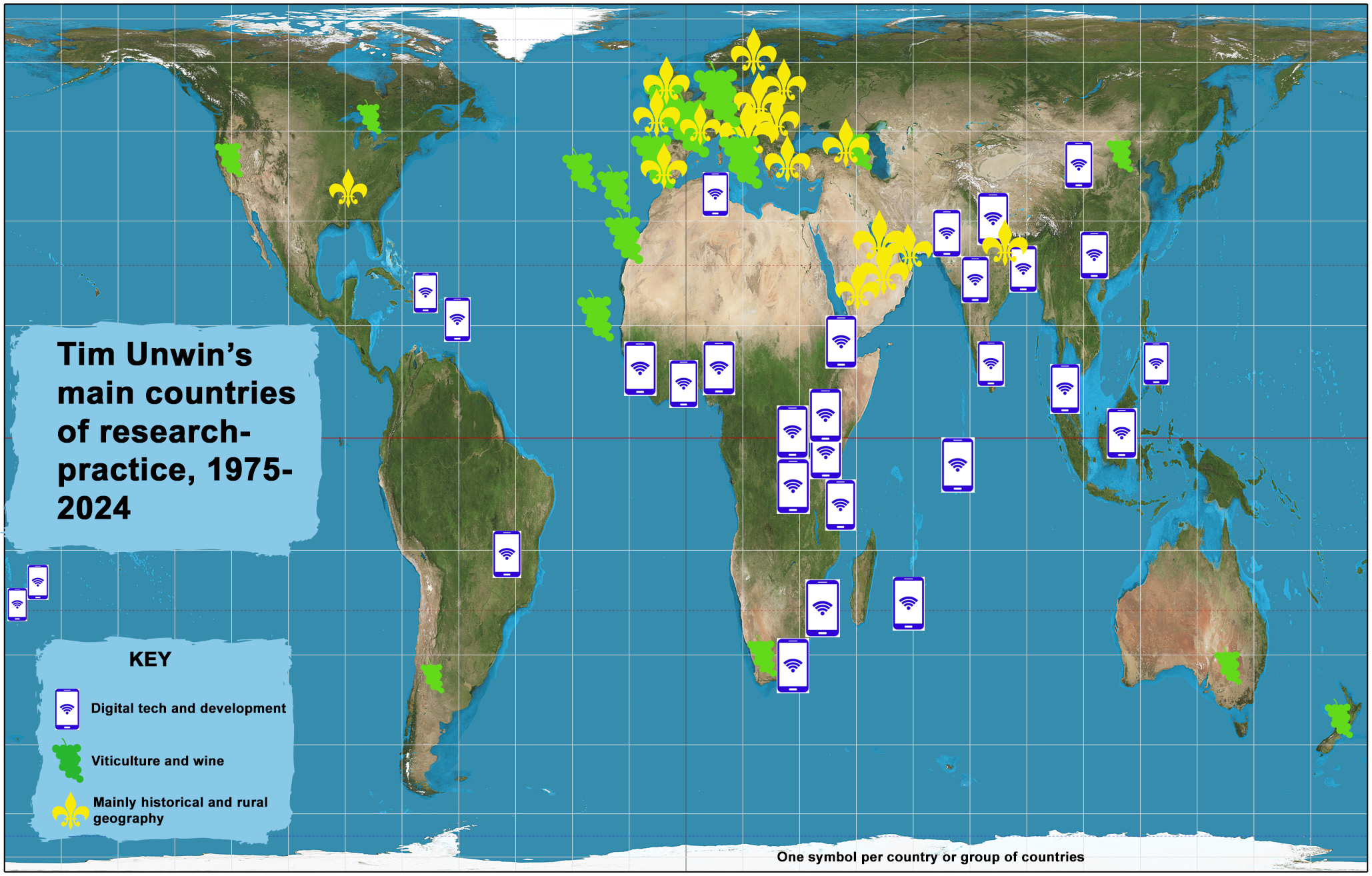 - Wine. Until the 2000s, Tim was best known for his research and teaching on wine, which found its culmination in his classic book: Unwin, T. (1991) Wine and the Vine: an Historical Geography of Viticulture and the Wine Trade, London: Routledge (translated into Spanish, Italian and Greek). He also co-founded the Journal of Wine Research, and was academic advisor and external examiner for the Institute of Master’s of Wine (2004-11). He has served as Chair of the UK and Ireland Panel of the World’s Best Vineyards awards since 2019, and most recently, he was one of the editors of the Routledge Handbook of Wine and Culture published in 2022, He continues to write an entertaining monthly wine column for a local magazine. He is particularly also known for his research on the 17th century philosopher John Locke’s interests in wine.