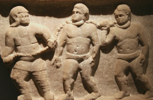 Roman collared slaves (Ashmolean Museum https://en.wikipedia.org/wiki/File:Roman_collared_slaves_-_Ashmolean_Museum.jpg)