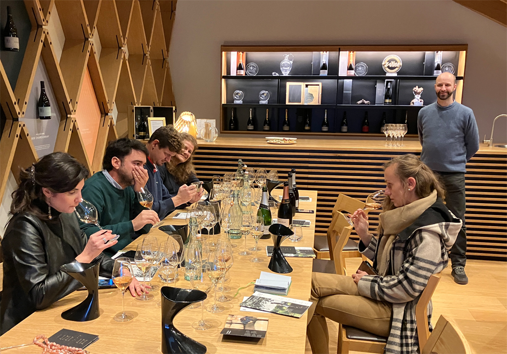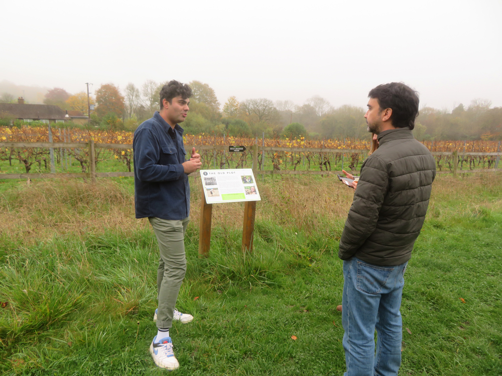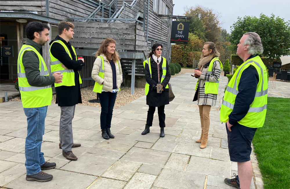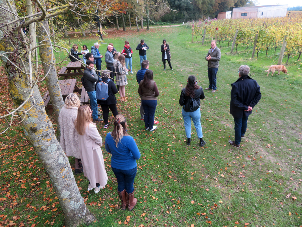After the awards ceremony, it was an enormous pleasure to take four of the Academy Chairs (Chiara Giorleo – Chair for Italy; Lotte Karolina Gabrovits – Chair for Germany, Benelux and Nordic; Pál Gabrovits – Chair for Austria, Hungary and Switzerland; and Pedro Nelson Dias – Chair for Portugal) on an exploration of some of the best wineries and vineyards in Surrey, Sussex and Kent. We are all immensely grateful to the proprietors and staff of these estates for their hospitality and the time they spent with us. Glimpses of our experiences (in the order that we visited them) are shared below to encourage you to visit these estates and get to know some of the excellent wines that are currently being produced in south-east England.