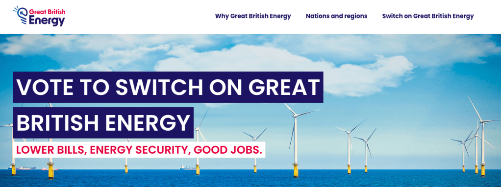 “Backed by a capitalisation of £8.3 billion of new money over this Parliament, Great British Energy will work closely with industry, local authorities, communities and other public sector organisations to help accelerate Britain’s pathway to energy independence”…” Great British Energy will create thousands of good jobs, with good wages, across the country. We will seize the opportunities of the clean energy transition and ensure the British people capture those benefits”