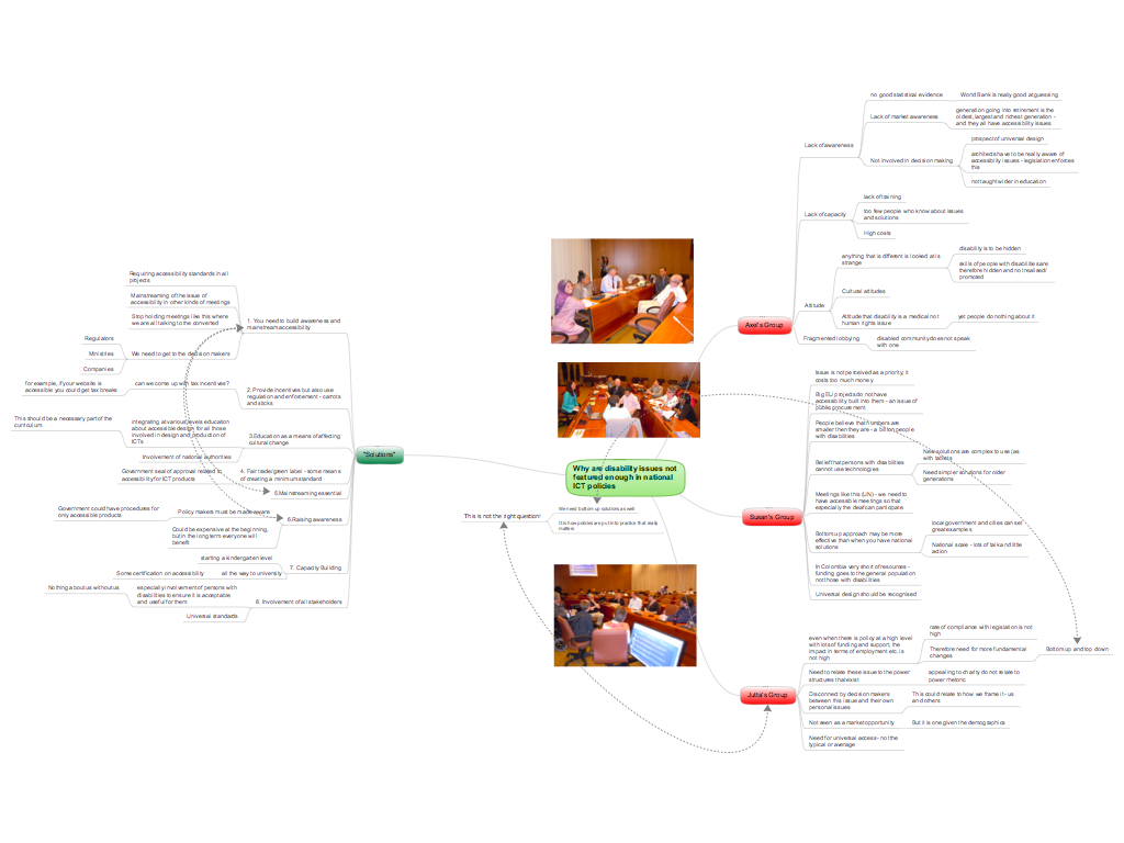 I was, though, hugely challenged by my own participation in one of these sessions. Having been invited by Brian Scarpelli to be the penultimate speaker in a session that he had convened on Internet Accessibility Empowering Persons with Disabilities (WS #64), I just felt that it needed a little livening up by the time it was my turn to speak. I therefore decided to take a roving microphone, and did my presentation walking around inside the cage of desks around which everyone was seated. I wanted to engage with the “audience” several of whom did indeed have disabilities, and I tried hard to involve them by, for example, describing myself and the venue for those who were blind. The audience seemed to welcome this, and I had felt that I had got my messages across reasonably well. Afterwards, though, someone who is autistic came up to me and in the nicest way berated me for having walked around. She said that the movement had distressed her, and made it difficult for her to follow what I was saying. She suggested that in the future I should stay still when doing presentations.