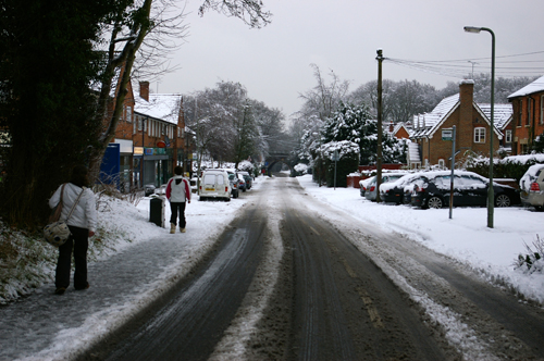 Many parts of the world are deep in snow with temperatures well below freezing – Moscow is predicted to have a maximum temperature of -14o C today. Our weather in the UK palls in comparison! However, last night saw some of the heaviest snowfalls in southern England for many a year, which somehow creates a sense of exhilaration. Minor roads across the region have not been cleared, leading to many an ‘incident’ with cars sliding all over the place, and not being able to get up even relatively slight inclines. Early this morning, attempts to help push drivers stuck on the hill outside our house proved surprisingly futile! Some young people nevertheless managed to ‘enjoy’ themselves, throwing snowballs at passengers waiting to get on to the few trains that were running! I know that this amount of snow is unusual, but Surrey County Council has done a really bad job of keeping local roads ice and snow free this winter. To be sure, the weather has been extreme, and main roads should take priority, but in the last 20 years the local roads in north-west Surrey have never been as dangerous as they have been this year.
